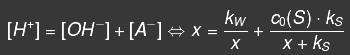 zur Berechnung der exakten Protonenkonzentration nach x gelöst, welche negativ